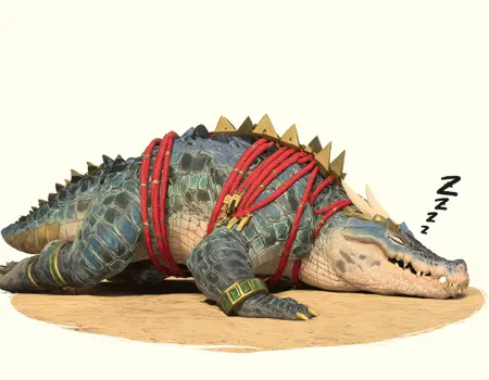 "Kroxigors are giant crocodilian relatives of the Saurus. They are hulking creatures, their bodies consisting of slabs of rock-hard muscle and massive jaws bristling with razor-sharp teeth. When enraged, they unleash their only form of speech - a blood-curdling roar that reverberates across the jungle.