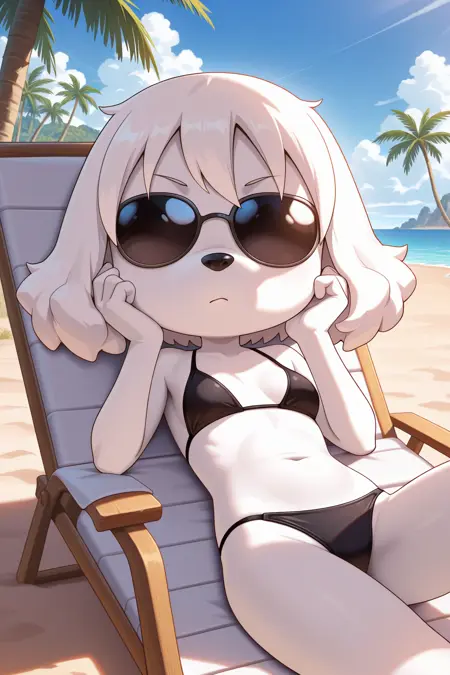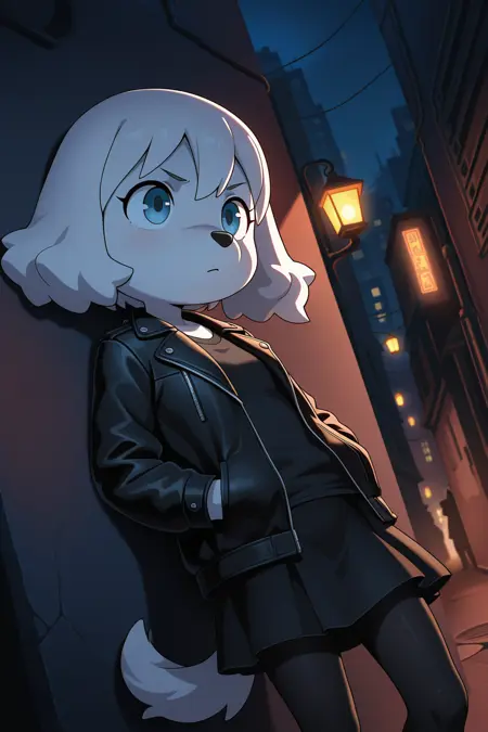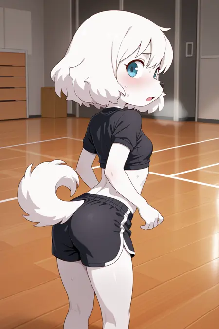 트리거 단어 및 외모: rui nikaidou, 강아지 코, 파란 눈, 흰 털, 하얀 피부, 흰 머리