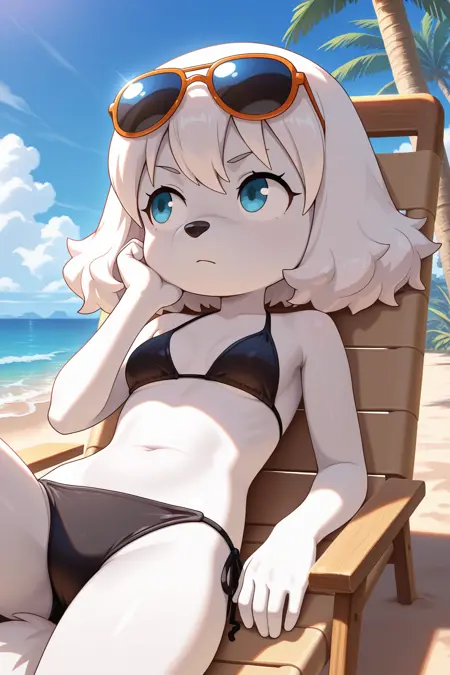 触发词与外观: rui nikaidou, 狗鼻子, 蓝眼睛, 白色皮毛, 白色皮肤, 白色头发