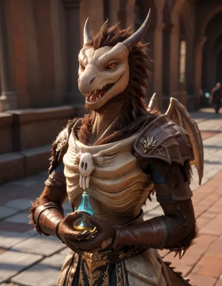// Pony: dragonoid, dark souls, estus, holding estus, open mouth, fur, scalie, red eyes, worried, male, tail, rib cage, cute fangs, claws, bone wings