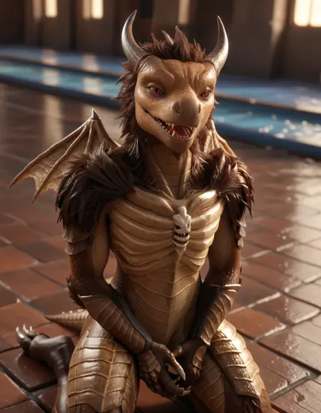 // Illustrious: dragon0id_d4rk_s0uls, scalie, solo, tail, furry, horns, rib cage, 1boy, sharp teeth, male focus, furry male, no humans, claws, yellow eyes, colored sclera, dragonoid wings