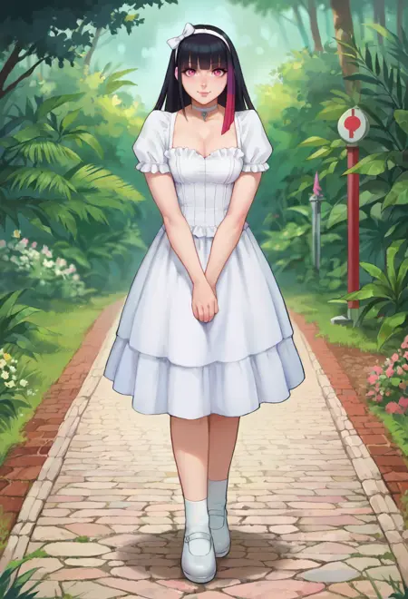 여기서 두 개의 태그를 빠뜨렸습니다. 수정할 때 고쳐놓을게요. 하나는 헤어밴드로, 그때까지는 white hair ribbon을 사용하세요. 다른 하나는 계층적인 드레스입니다.