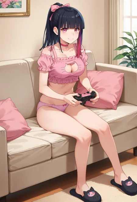 바지의 단추와 목걸이는 약간 어긋나 있습니다. 향후 업데이트할 예정입니다. 컷아웃 태그는 small shirt cutout이지만, 이 태그는 이미지 리뷰를 유발합니다. 어쨌든 필요할 경우 부정 태그로 사용할 수 있습니다.