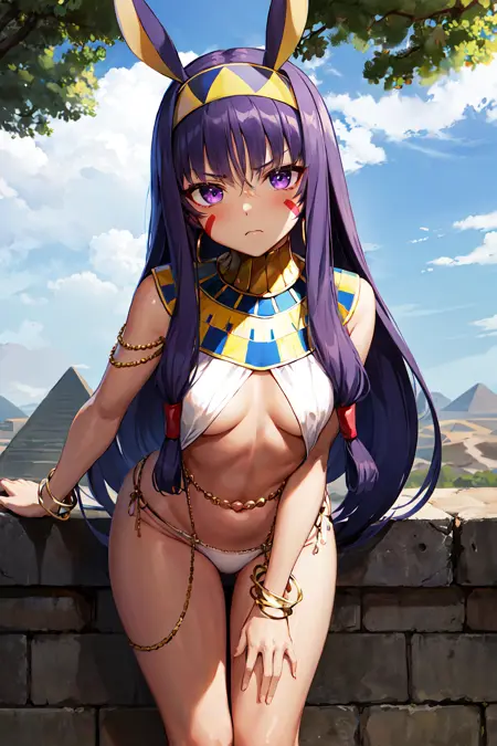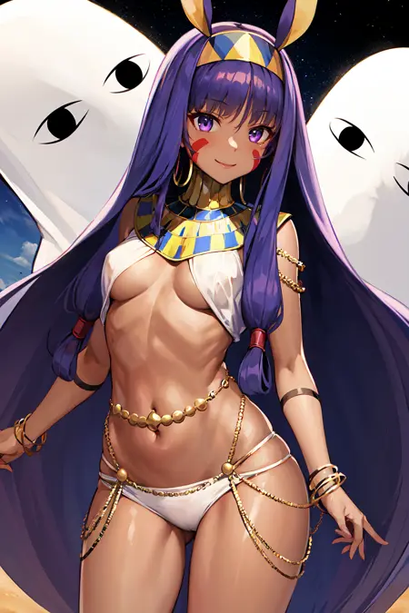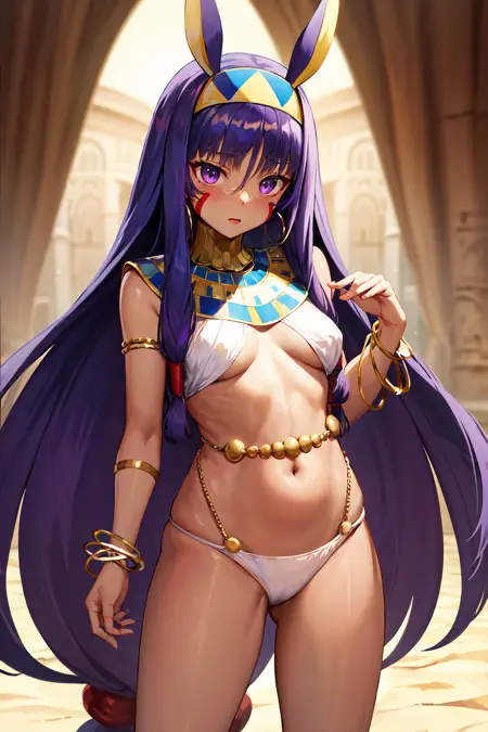 服饰1nit1, 动物耳朵, 深色皮肤, 长发, 面部标记, 发带, 饰品, 手镯, 埃及服饰, 大腿, 腹部项链, usekh项圈, 小胸部, 白色内裤