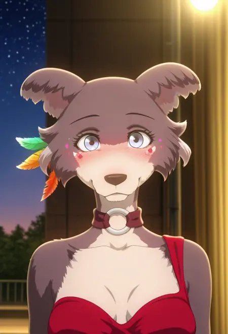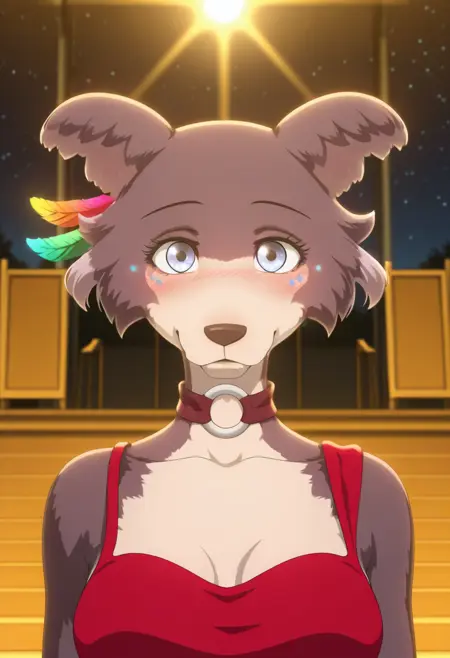 주요 프롬프트: juno, 늑대 소녀, 갈색-보라색 털, 파란 눈, 늑대 꼬리, 단발, 동물 코, 동물 귀