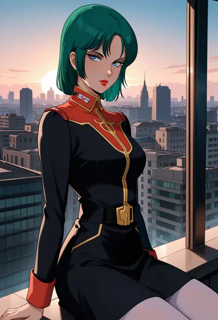 mauar, 녹색 머리카락, 파란 눈, 붉은 입술, 1명의 소녀(1명의 성숙한 여성)