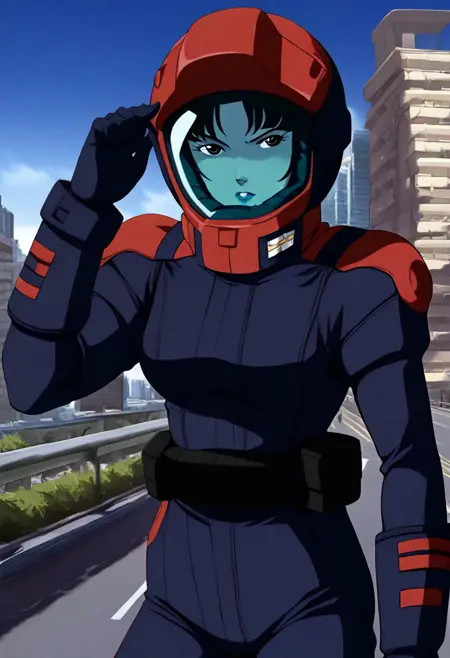 mauar, 녹색 머리카락, 파란 눈, 붉은 입술, 1명의 여성