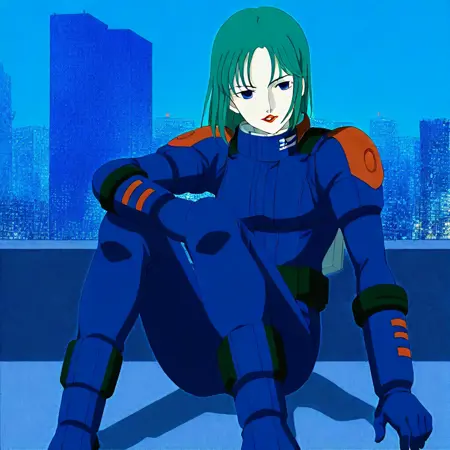 mauar, green hair, blue eyes, red lips, 1 female