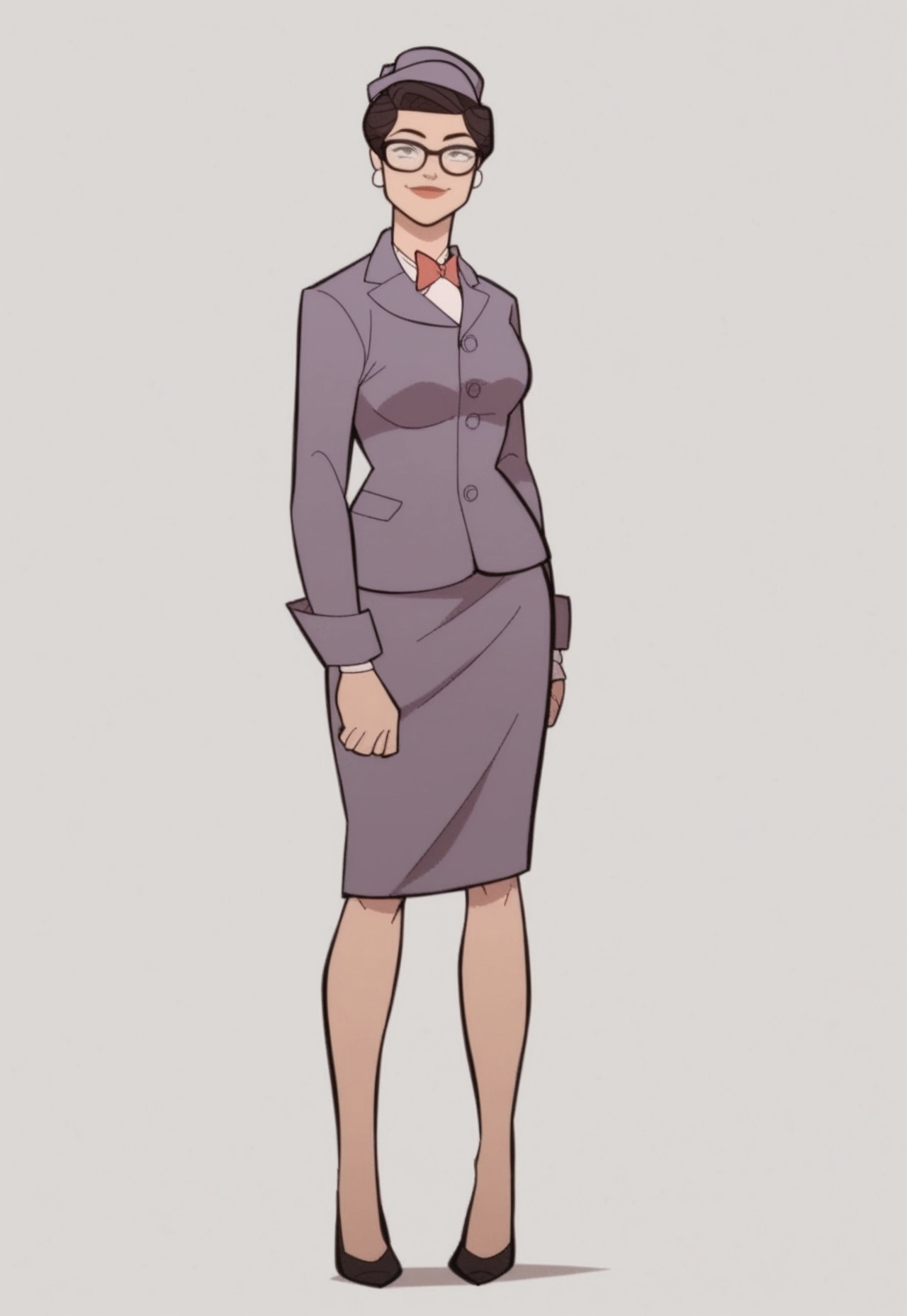 1950年代風衣装: フォーマル、スーツ、モノトーン、グレースケール、ブレザー、ボウタイ、ヴィンテージハット、グレー手袋、ペンシルスカート、ハイヒール、片側のまとめ髪、眼鏡、パールイヤリング(**ヴィンテージハットをハットなし、乱れた髪**に変更すると、異なる外観になります)