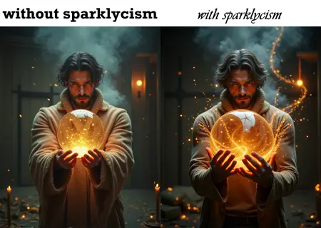 Sparklycism 通过添加体积光效、活泼的闪烁和光泽来支持闪闪发光的元素。它还能增强阴影、光线、对比度和整体细节,并具备次表面散射效果。