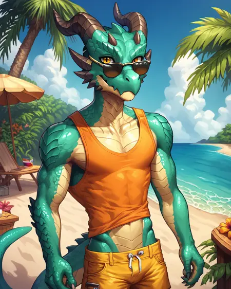 I made this lora to be able to easily reproduce the proper looks of the character (horn shape, color, spikes, etc.). Feel free to use it if you want nice pics with a naughty teal kobold in any kind of situation, as I have no issues with seeing OCs have their own adventures.