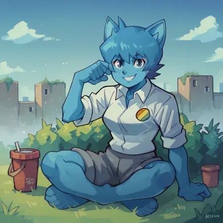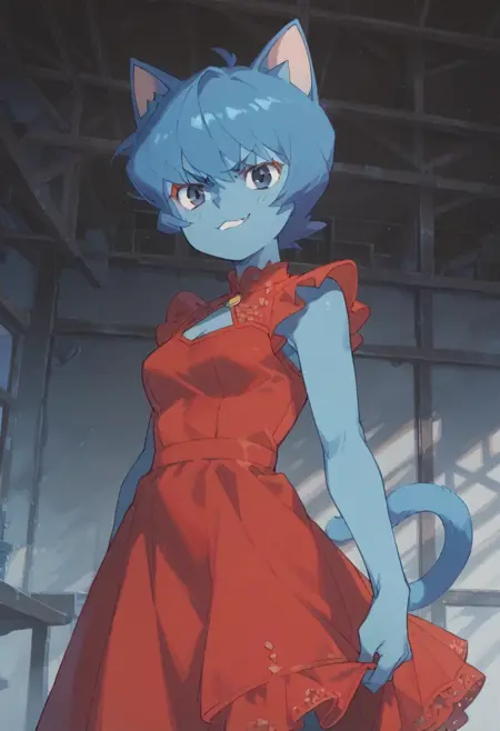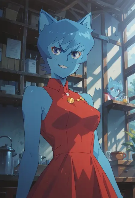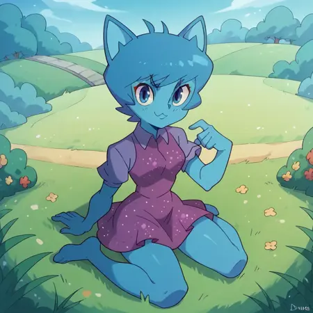 Nicole Watterson, blue skin, blue hair, cat ears, blue eyes
