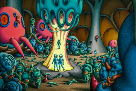 판타스틱 플래닛(1973)은 르네 알루의 감독작인 프랑스 애니메이션 과학 소설 영화로, 멀리 떨어진 행성 야감을 배경으로 거대한 푸른 외계인 드라그가 인간(옴이라 불림)을 애완동물로 억압하는 세계를 그린다. 이 영화는 옴들이 억압자들로부터 자유를 얻기 위한 투쟁을 추적하며, 초현실적인 애니메이션과 환상적인 시각 효과로 유명하며, 권력, 억압, 저항이라는 주제를 탐구한다.