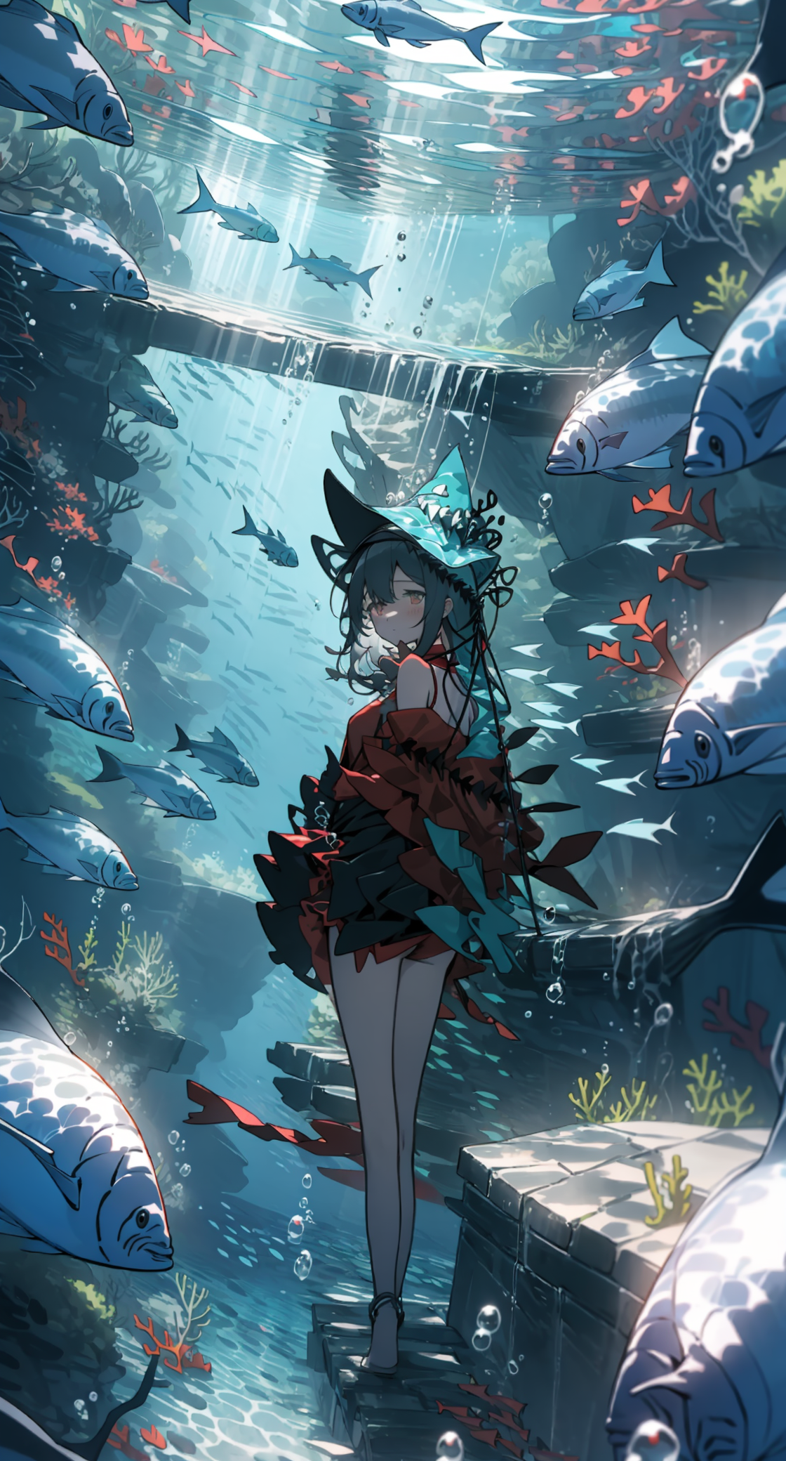 建议使用标签:水下、气泡、珊瑚、阳光、空气泡等。