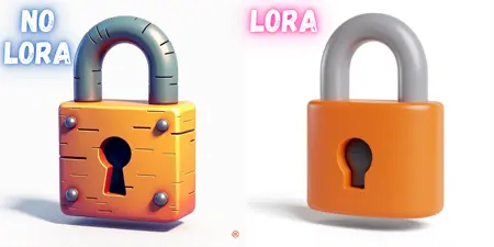 ohwx 3D 렌더링된 자물쇠, 만화 스타일로 묘사됨. 배경은 단순한 흰색. 전체적인 스타일은 장난스럽고 환상적이며, 선명한 선과 밝은 색상으로 판타지 또는 모험 테마를 암시함. 일러스트는 텍스처와 음영에 초점을 맞춰 사실적인 3차원 외관을 구현하기 위해 매우 상세함. 이미지는 화려하고 눈에 띄며, 게임이나 아동 도서와 같은 디지털 맥락에서 사용될 가능성이 높음. 색상은 밝고 강렬하여 따뜻함과 흥분을 조성함.