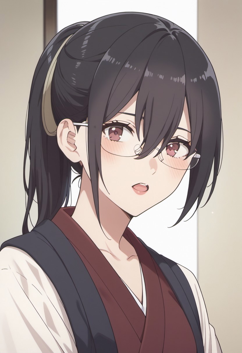 Original character: hanyu mayuri, long hair, black hair, glasses, brown eyes