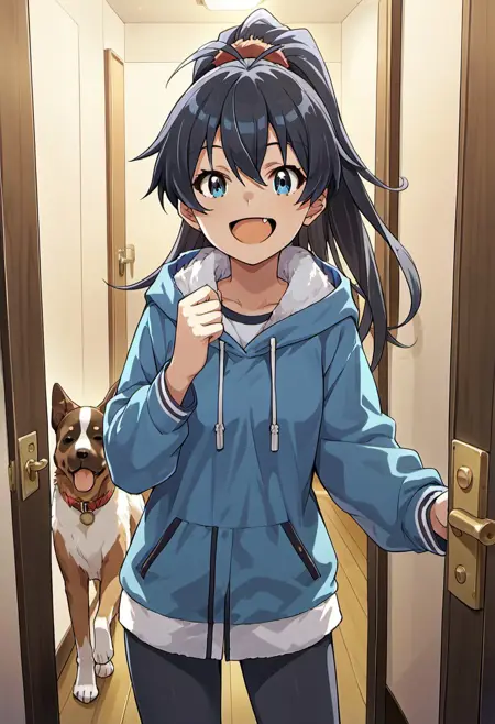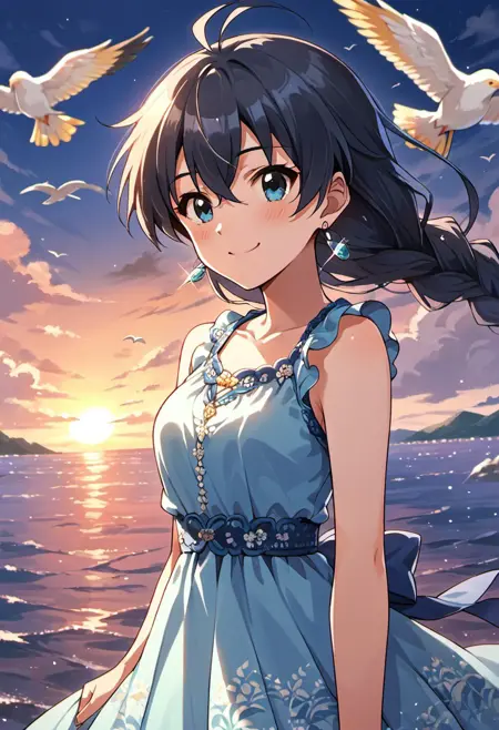 Trigger Words: ganaha hibiki, long hair, black hair, blue eyes