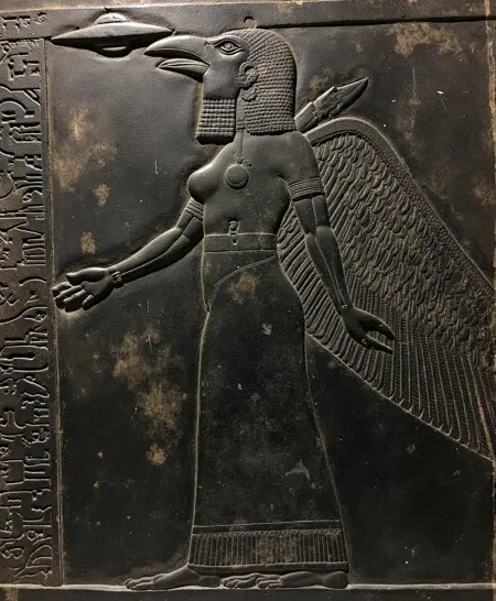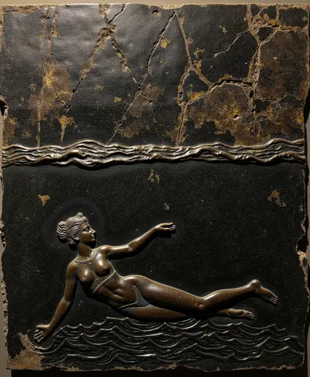 一幅浮雕雕塑。该雕塑由{石材类型}雕刻而成,表面具有风化纹理,暗示其已长期暴露于自然环境中。浮雕描绘了{雕塑主题}。石材的质地粗糙不平,部分区域显示出侵蚀或损坏的痕迹。整体风格 reminiscent of ancient {文化风格}艺术,强调精细的象征性表现。