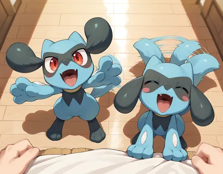 clothed pokemon, maid, maid headdress, maid apron, white apron, black dress, short sleeves, jingle bell, red bow, bowtie,