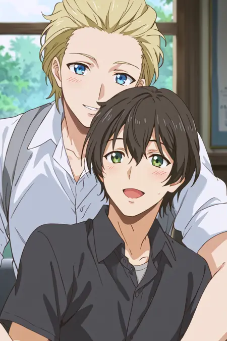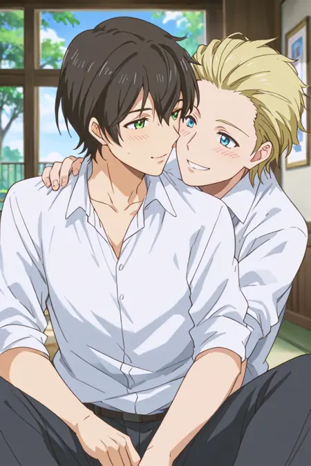 Pair = AlexDG, NatsuoDG, gay couple focus, 1androgynous, 1boy, anime screencap