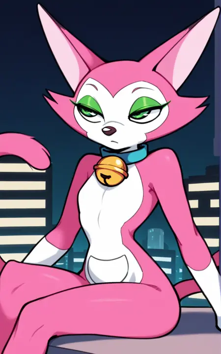 強化タグ: 動物の耳、中程度の胸、緑の目、尾、猫の耳、首輪、猫の尾、鈴、化粧、半閉じた目、猫娘、鳴り鈴、首の鈴、毛むくじゃら、毛むくじゃらの女性、体の毛、二色の毛、ピンクの毛