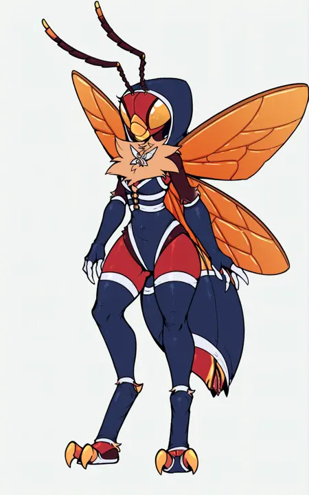 强化标签: 节肢动物腹部、红色皮肤、双色皮肤、黄色眼睛、毛皮镶边、翅膀、昆虫、触角、节肢动物女孩、手指较少、昆虫翅膀、四只手臂
