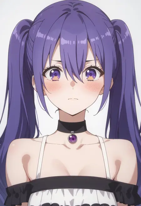 • Cosplay as a girl with long purple hair: nagomi, purple hair, purple eyes, very long hair, twintails