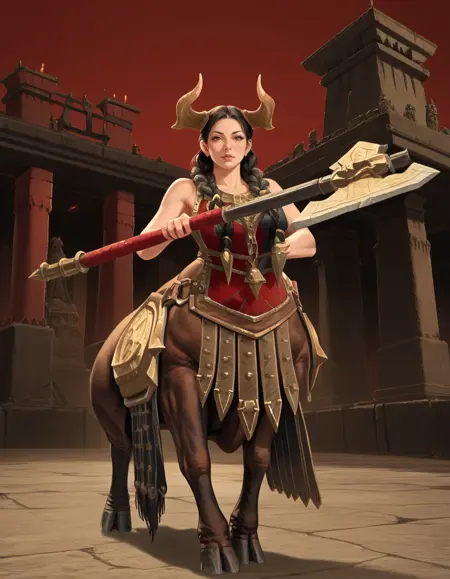BullCentaur, holding axe, shield,