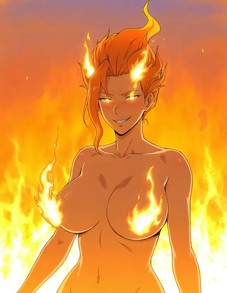 BrightWizard, 发光的眼睛, 橙色头发, 胡子, 火焰, 纹身, 斗篷, 腰带, 链条,