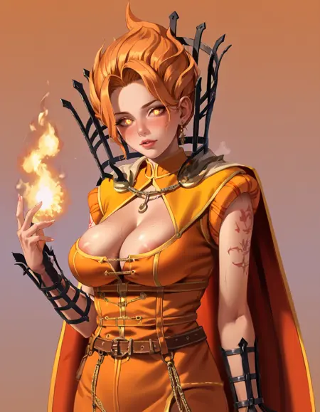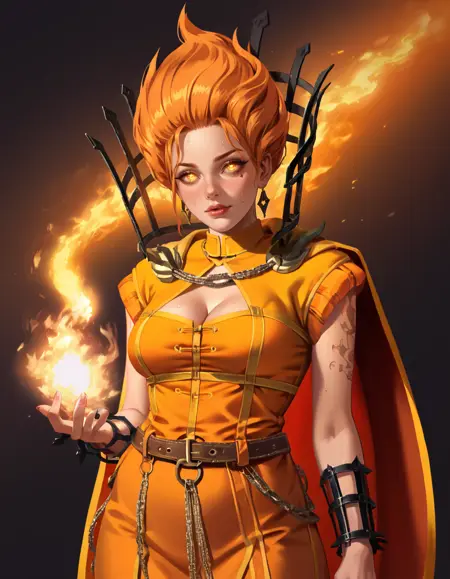 BrightWizard, 发光的眼睛, 橙色头发, 胡子, 火焰, 纹身, 斗篷, 腰带, 链条,