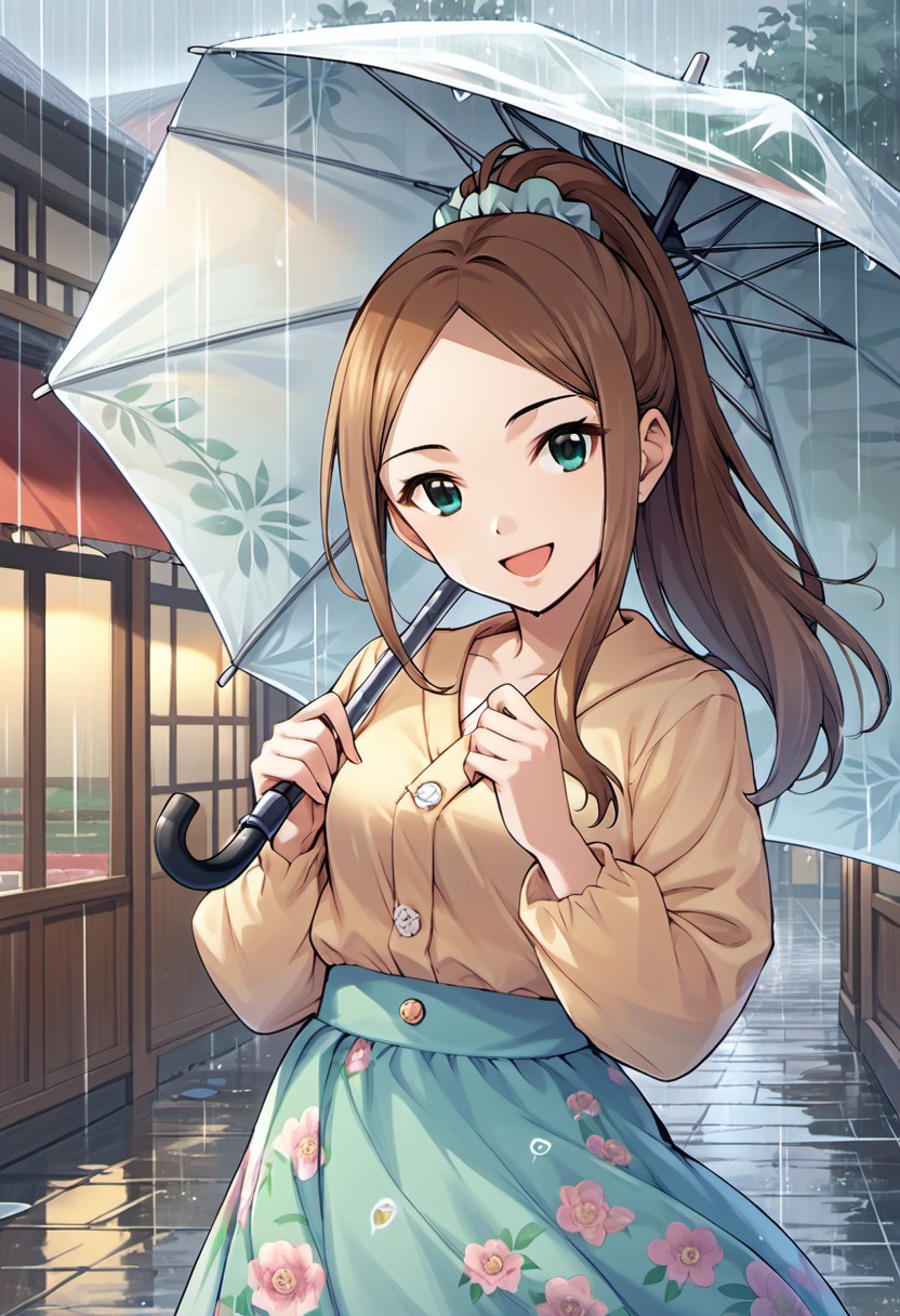 트리거 단어: matsuyama kumiko, 긴 머리, 갈색 머리, 녹색 눈
