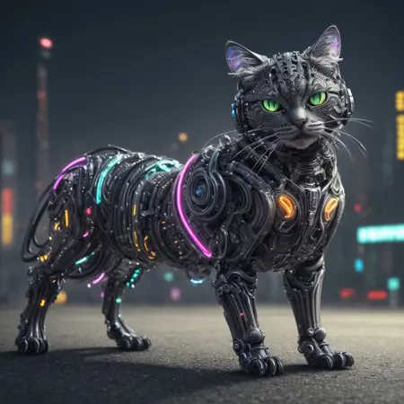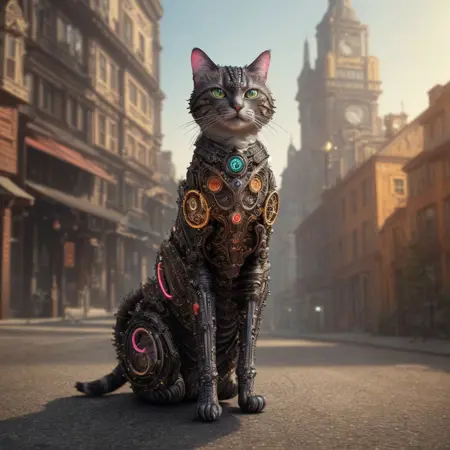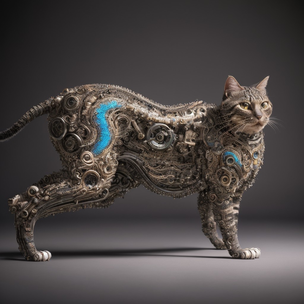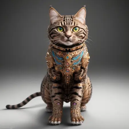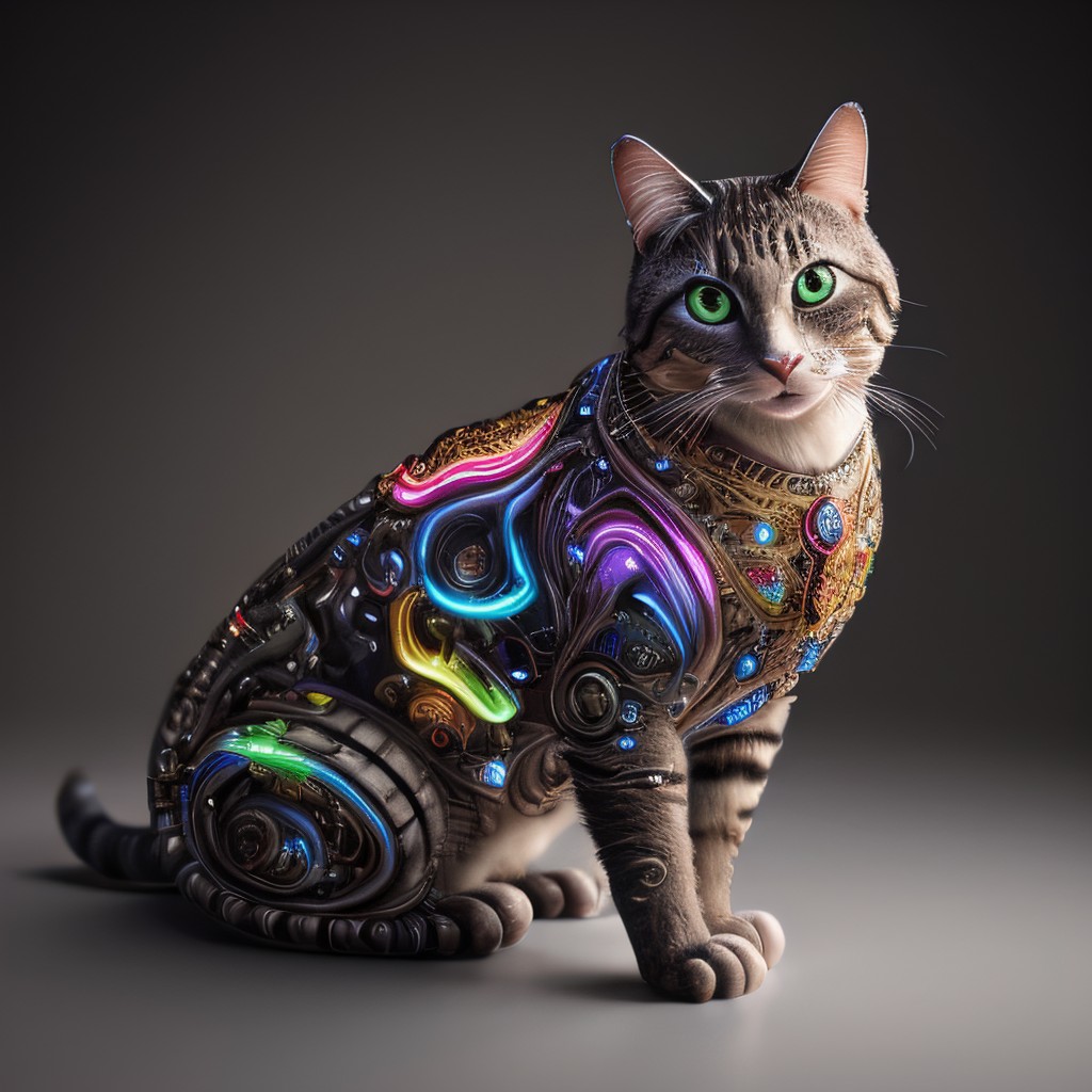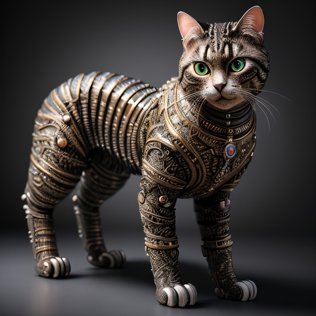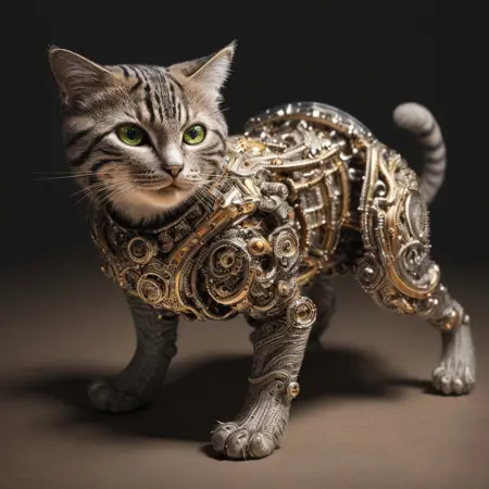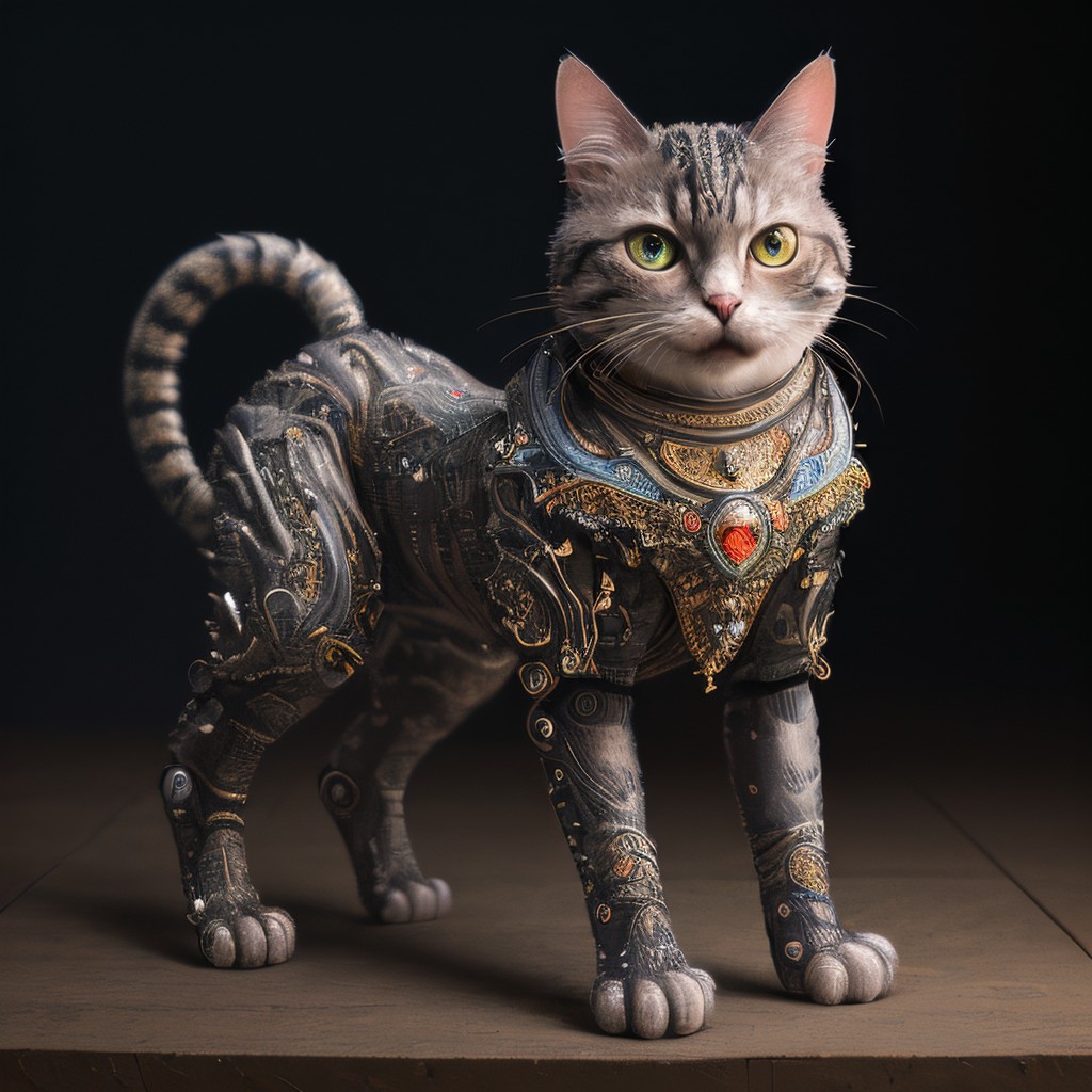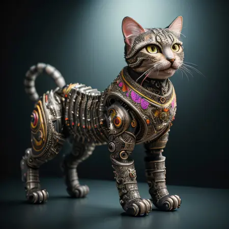 이 임베딩은 고양이의 스타일을 기계식 고양이로 변경합니다.