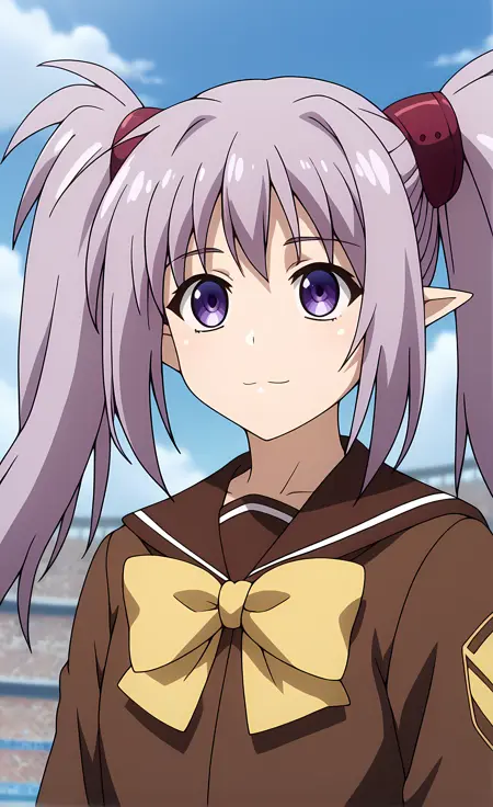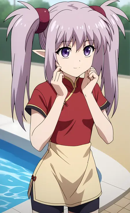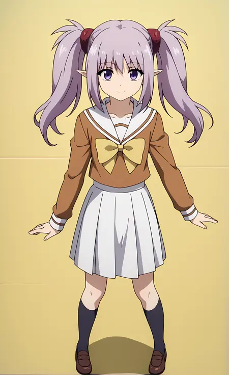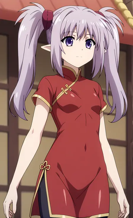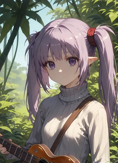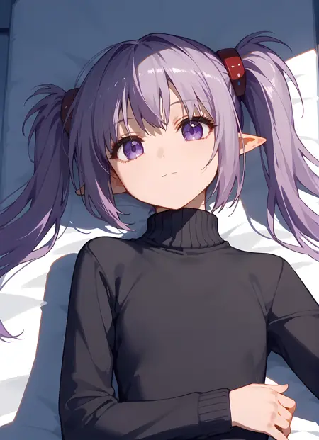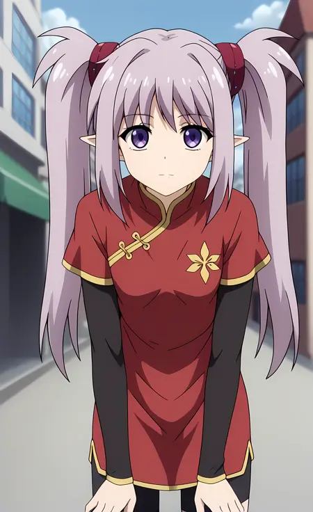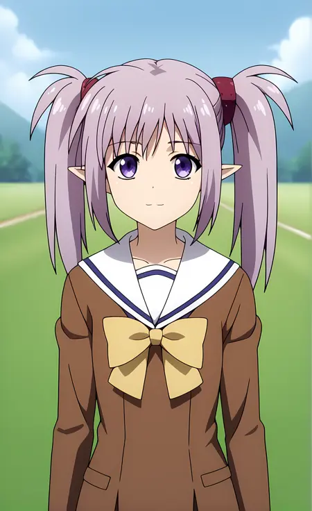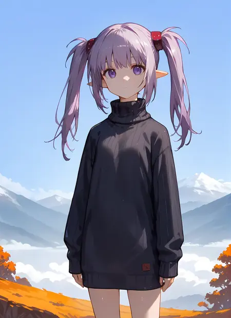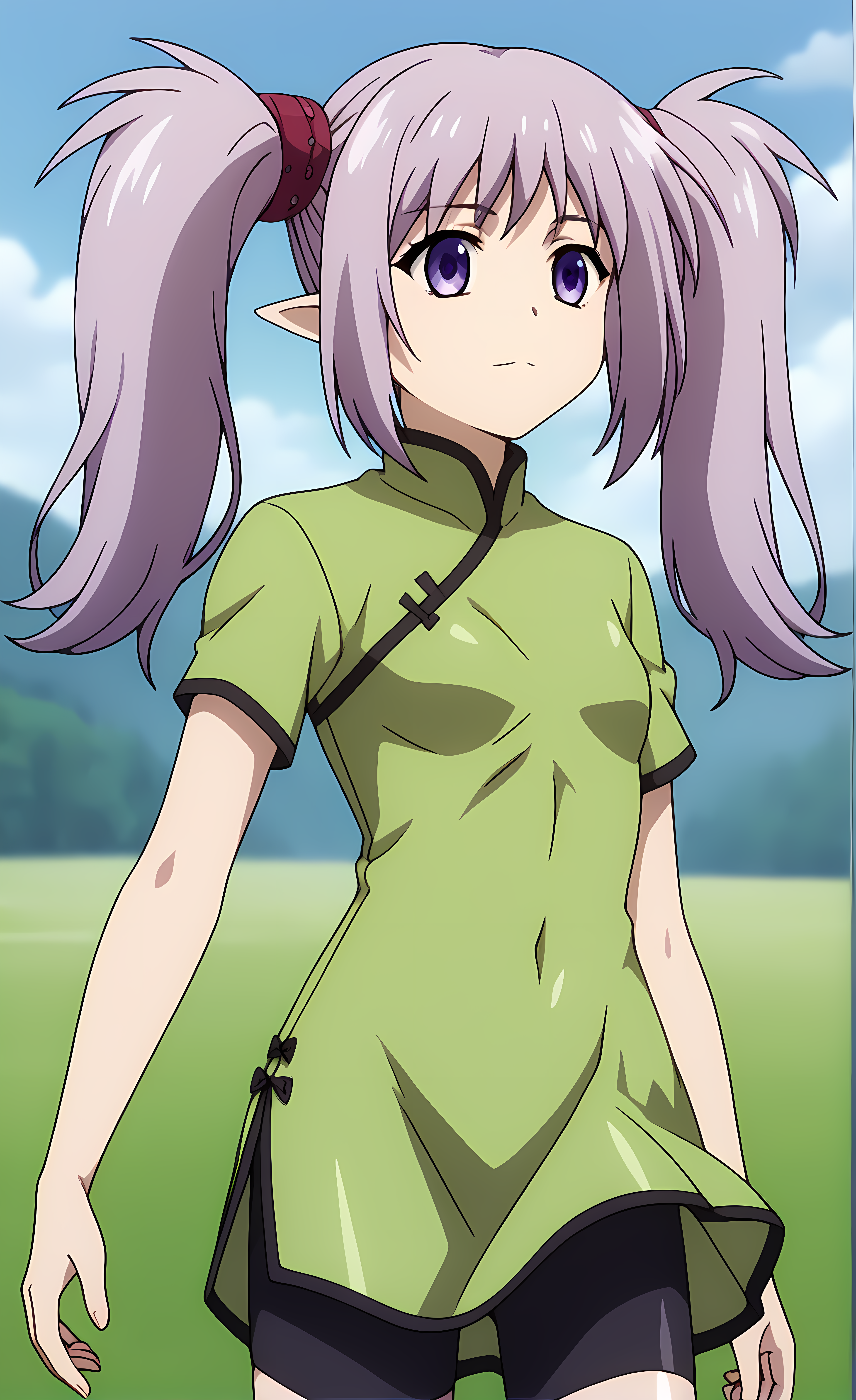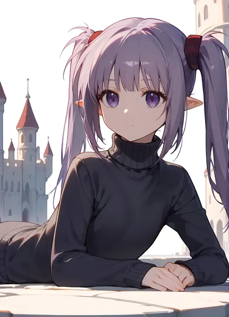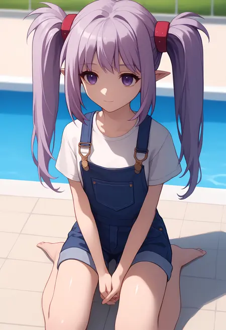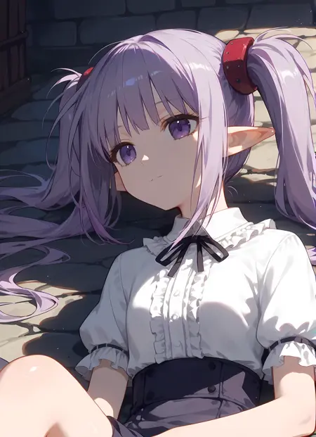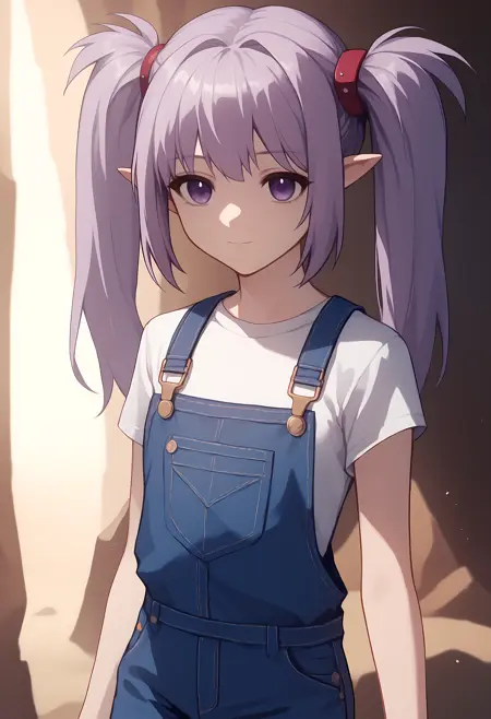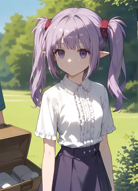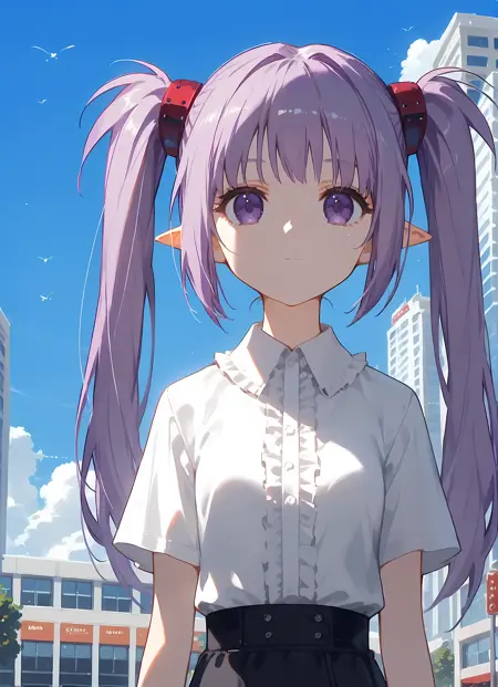 外观 → ohwx, 1girl, solo, sidelocks, twintails, long_hair, purple_eyes, purple_hair, grey_hair, empty_eyes, expressionless, pointy_ears,