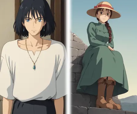 Main characters from Studio Ghibli's 2004 movie **Howl's Moving Castle (****Howl no Ugoku Shiro/**ハウルの動く城).