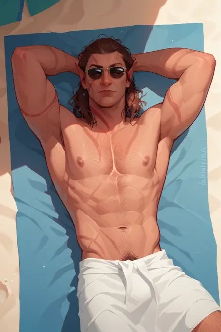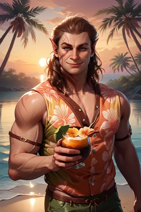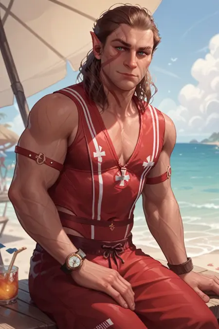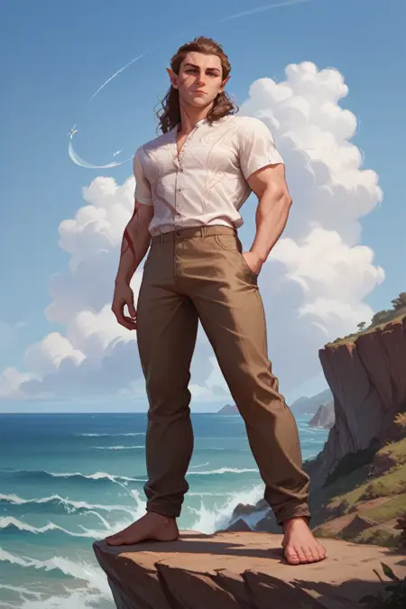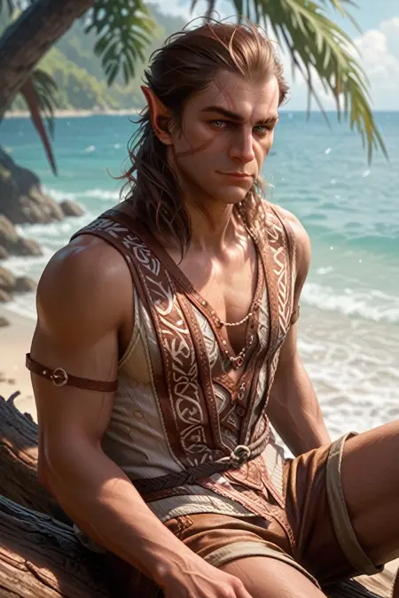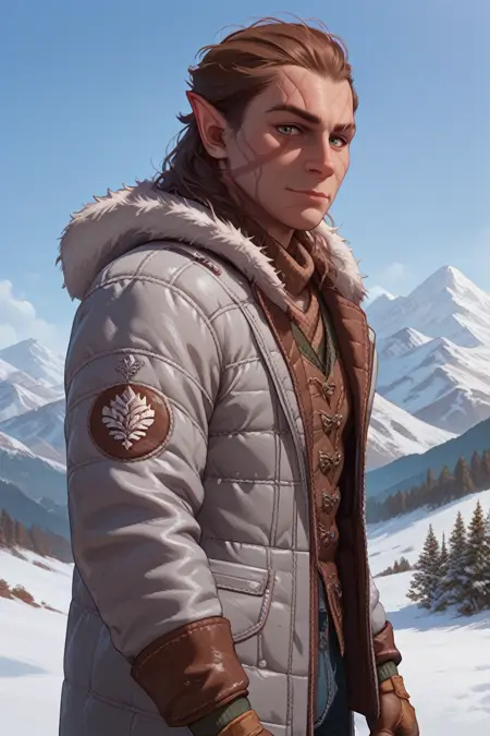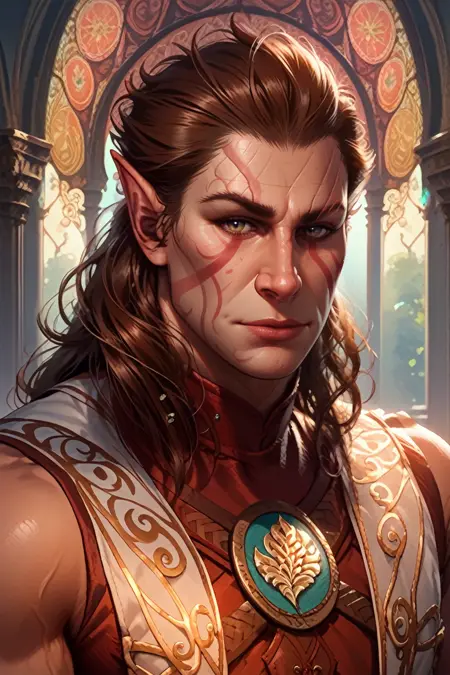 BGHalsin, 1boy, brown hair, pointy ears, scar