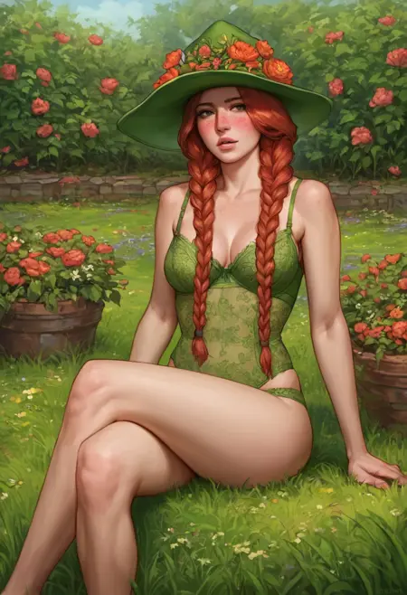 Mgarlick, red hair, long hair, twin braids, freckles,