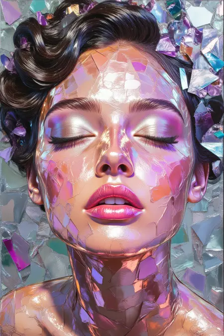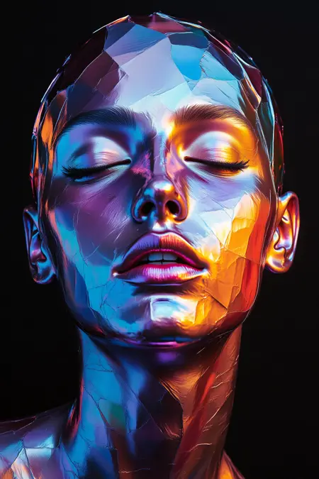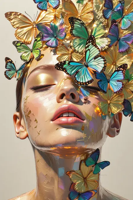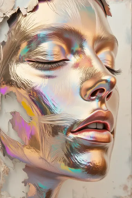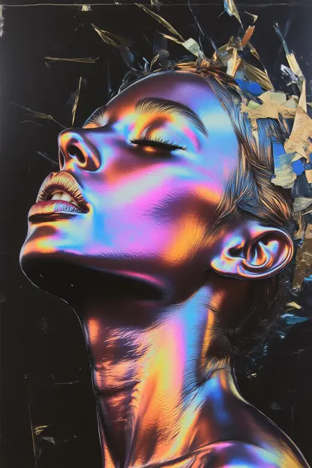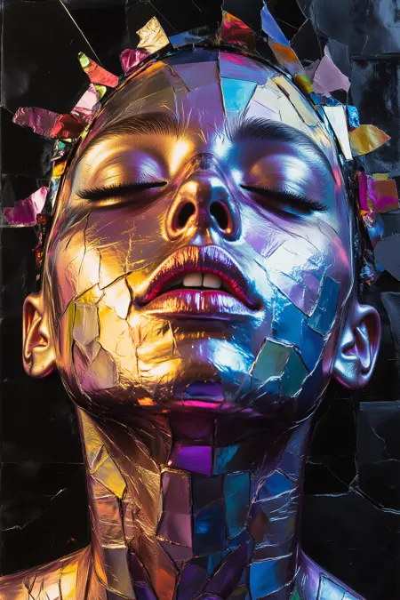 Introduction: this lora features rainbow metallic color foils as art, attaching the film to the face, and overall has a very high artistic atmosphere. In the application scene: mainly suitable for NFT art, dedicated to create a full of artistic atmosphere of the photographic photos