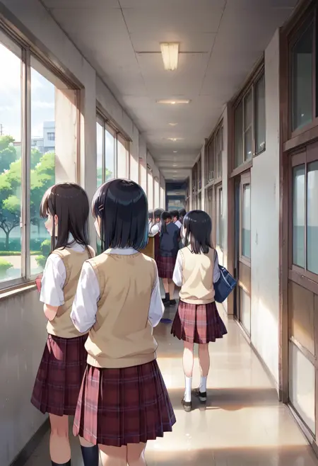 일본 학교 건물에서 흔히 볼 수 있는 복도 풍경을 그려낼 수 있을지도 모르는 LoRA입니다.