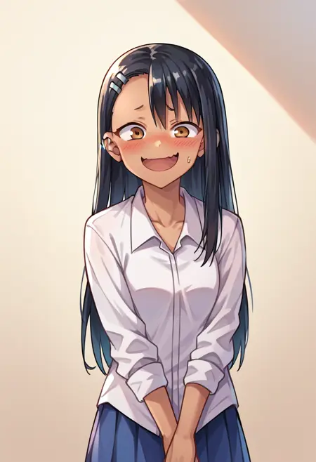 你可以在微笑中添加fang和skin_fang,如果添加了skin_fang,请确保将fang和fangs设为负面提示,否则你会得到大量獠牙。