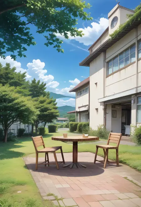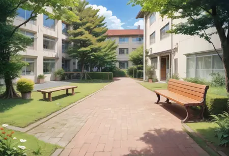 これは、日本の学校の校舎の中庭っぽい風景をもしかすると描くことができるかもしれないLoRAです。