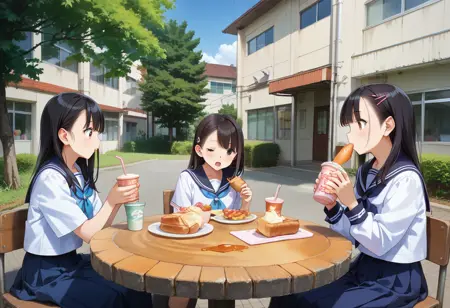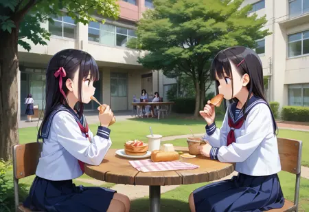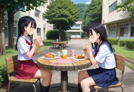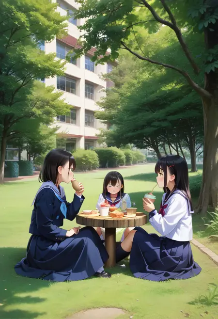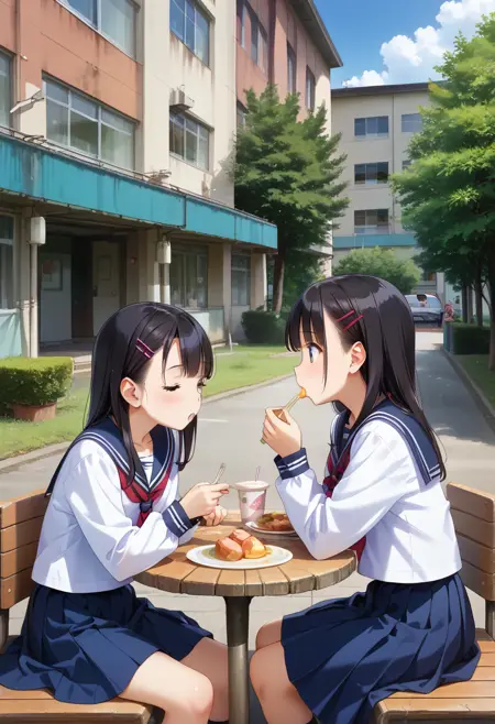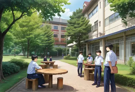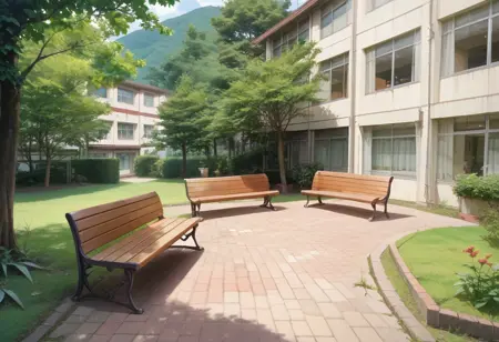 这是一个可能描绘出日本学校建筑中庭风格景观的LoRA。