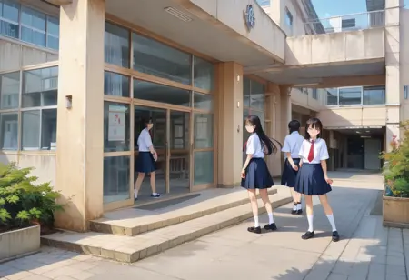 이것은 일본 학교 건물에 흔한 현관 풍경을 possibly 묘사할 수 있는 LoRA입니다.