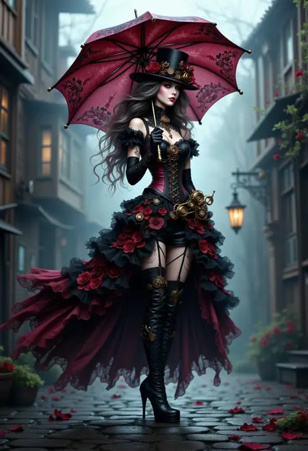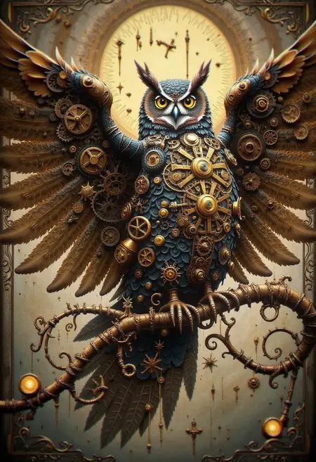 일러스트레이션 및 예술작품: 스팀펑크와 마법이 만나는 매혹적이고 초현실적인 장면을 제작하는 데 훌륭하며, 풍부하고 신비로운 요소로 시각적 서사를 강화합니다.