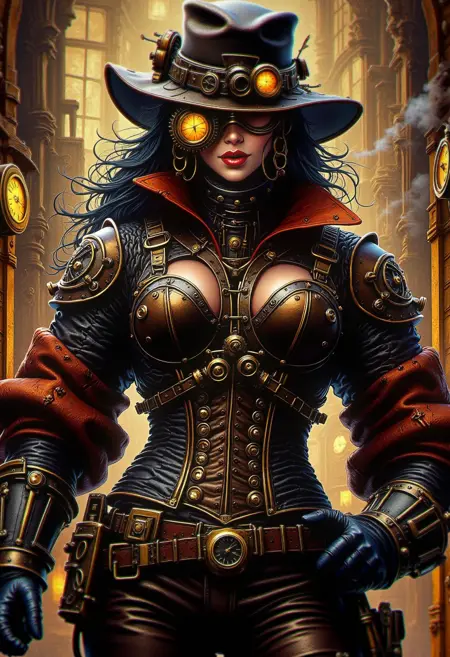 다양한 적용: 캐릭터 디자인, 컨셉 아트, 일러스트레이션 등 다양한 창작 프로젝트에 이상적이며, 독특하고 인식하기 쉬운 스팀펑크 스타일을 추가합니다.