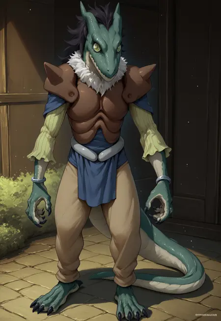 注目タグ:「score_9」、「source_anime」、「wavy mouth」を「furry」、「reptile boy」、「jagged mouth」に変更してください。
