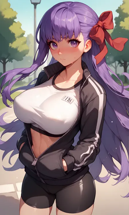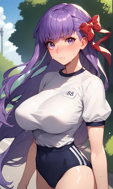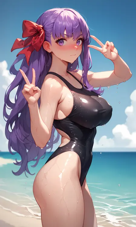 BB、紫の目、紫の髪、長い髪、前髪、赤いリボン、髪のリボン
