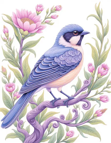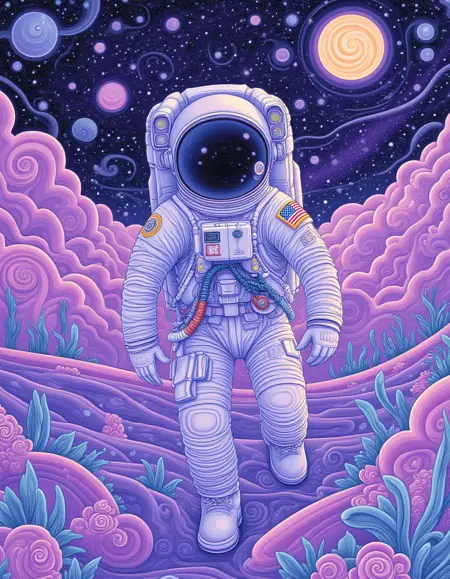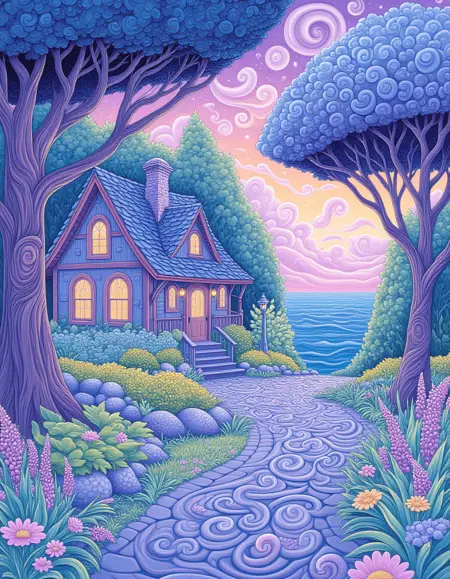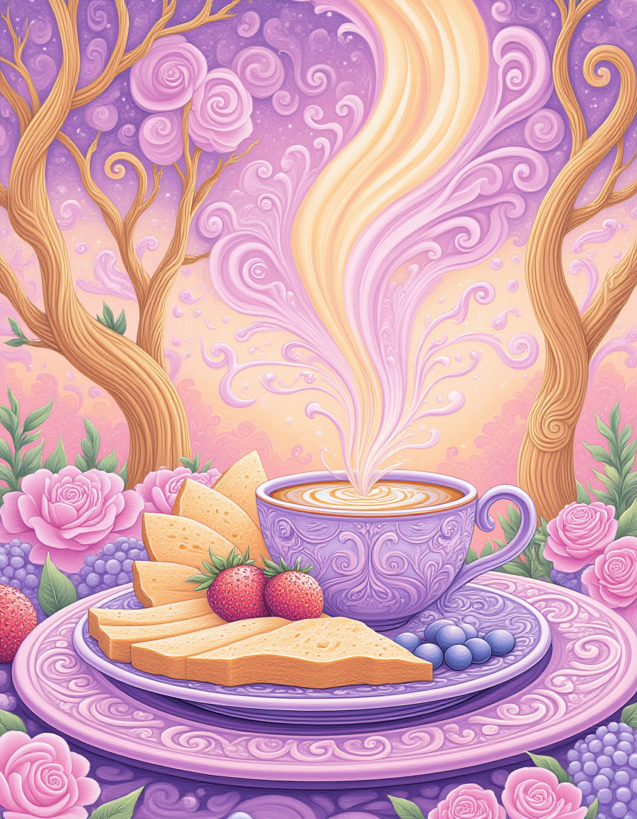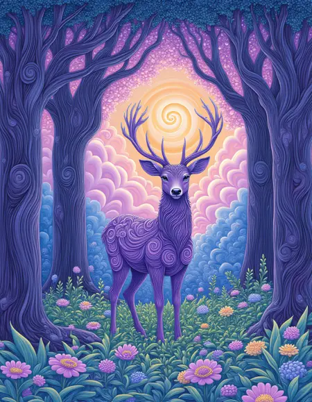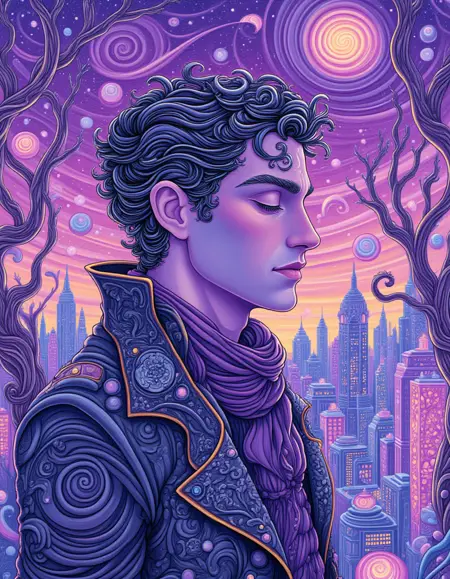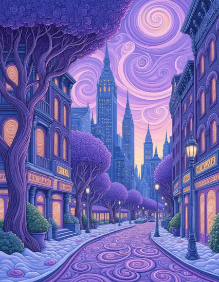 这是一种充满旋涡图案的插画风格,采用柔和的配色方案,以紫色为主。