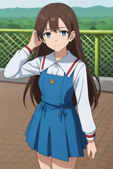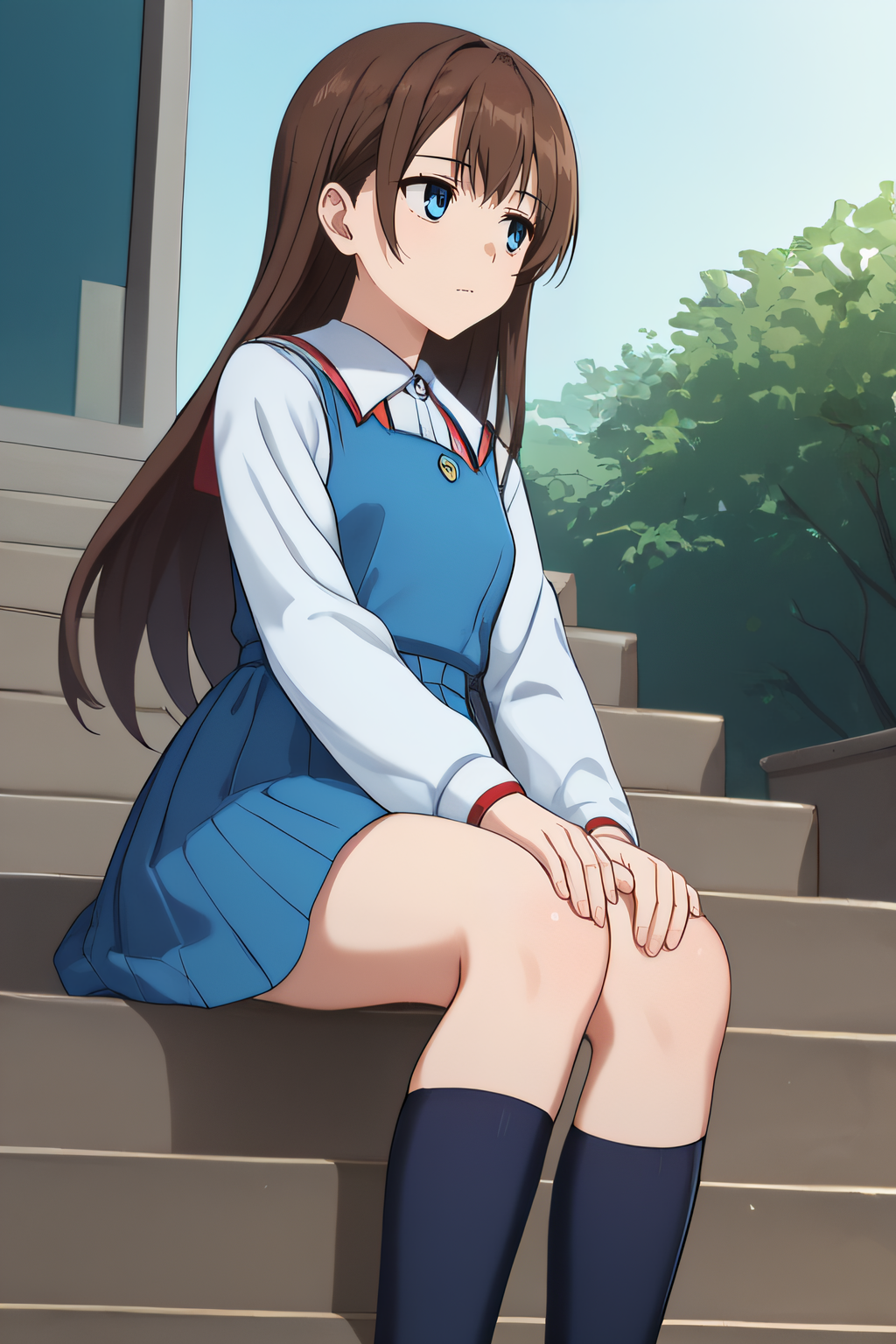 | 训练词汇 | hiromi, brown hair, long hair, blue eyes已复制! school uniform, long sleeves, white shirt, blue dress, blue skirt, expressionless, thighs, blue thighhighs已复制! hiromi, brown hair, long hair, blue eyes, ponytail, sweat, sweaty body, sportswear, basketball_uniform已复制! hiromi, brown hair, long hair, blue eyes, collarbone, purple sweater, v-neck, white jeans已复制! |