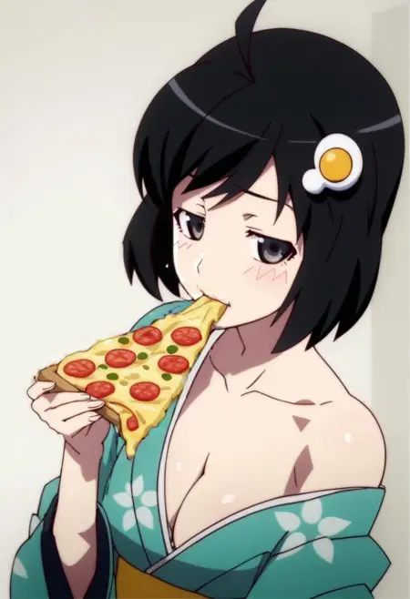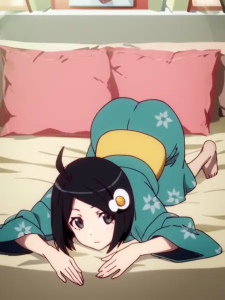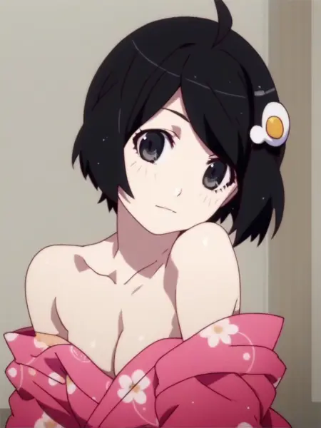 1girl, araragi tsukihi, black hair, black eyes, short hair, ahoge,