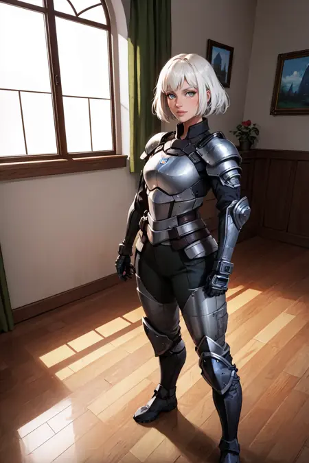 Outfit Tags: bodysuit, armor, fingerless gloves, gloves, pants, knee pads